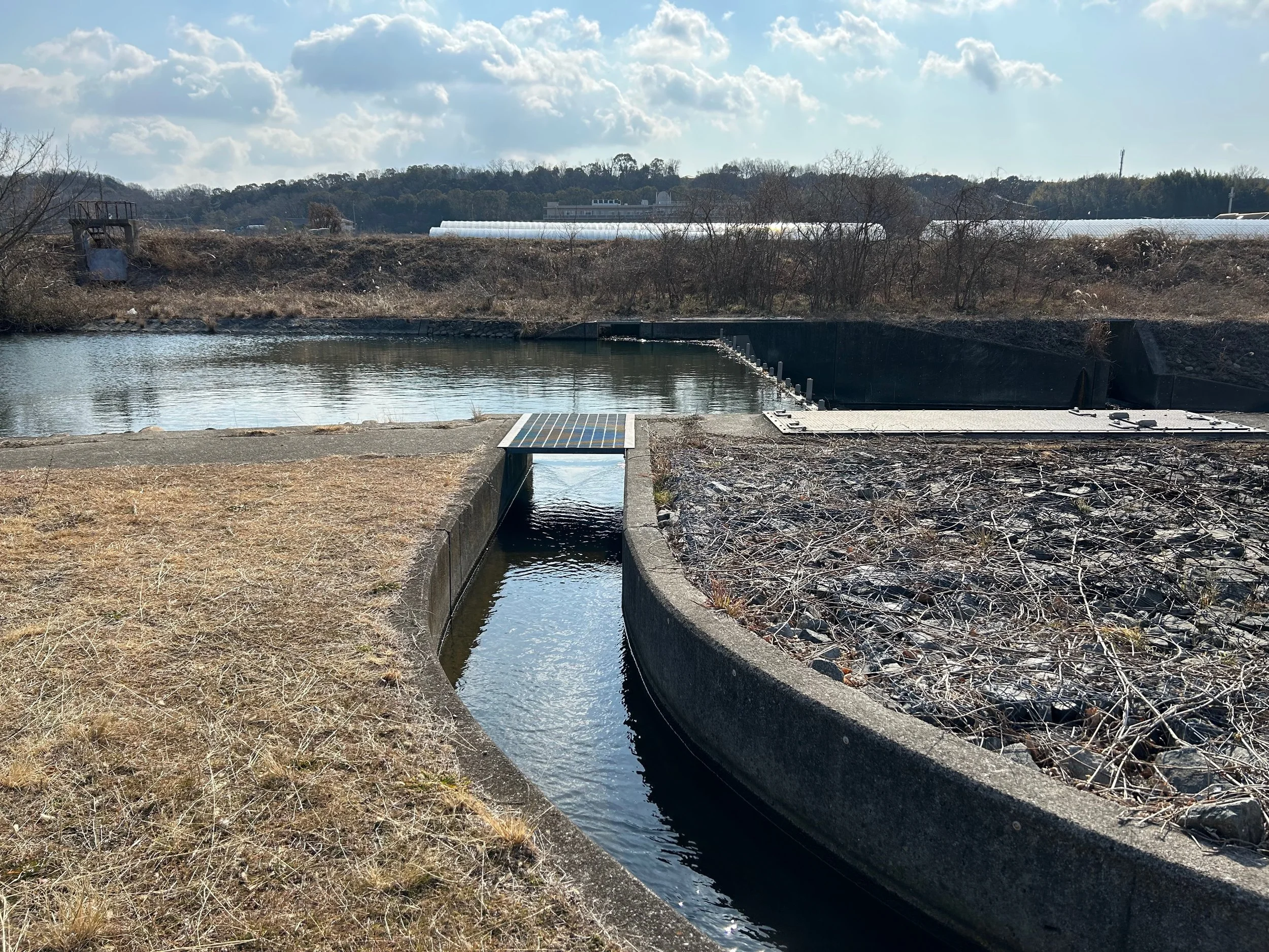 写真⇧ 林崎疏水路取水口から明石川を臨む